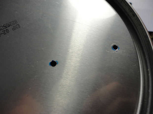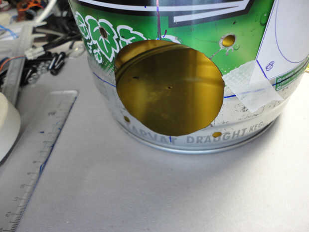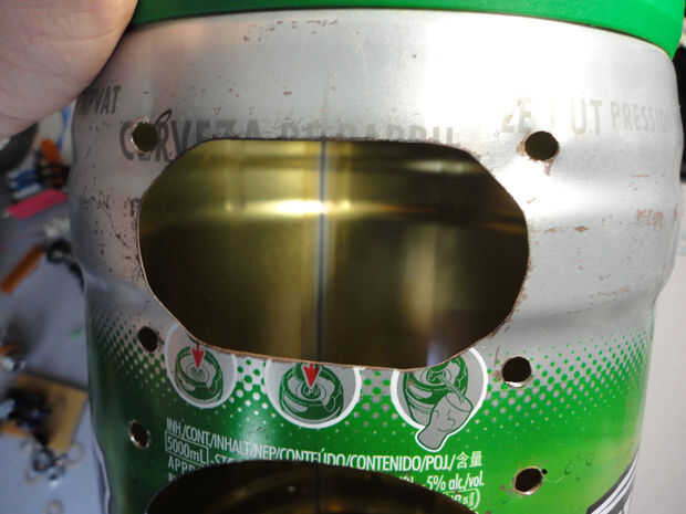 Punto principal para prestar atención a: el acero del barril es bastante más grueso en la parte superior e inferior. Porque no hay ninguna curvatura para ayudar a distribuir la presión de los gases en el interior, se hace de esta manera. Me tomó dos discos para completar el perímetro de este corte, el primero de ellos después de haber roto y la segunda conseguir usado a la mitad del diámetro original.