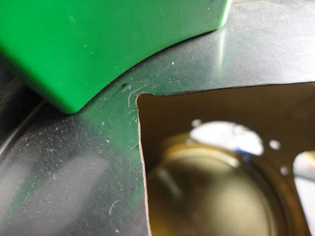 -Básicamente la misma estrategia en cuanto a los lados, pero con mucho cuidado. El metal es más grueso y es más probable necesitar 3 o 4 pases para cortarla