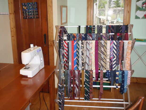 Usted debe tener una correa de 2 pies o tan de largo. No todo tiene que ser el mismo pero trate de que los dos extremos por el mismo ancho. Esto hace menos bordes a tuck la final.