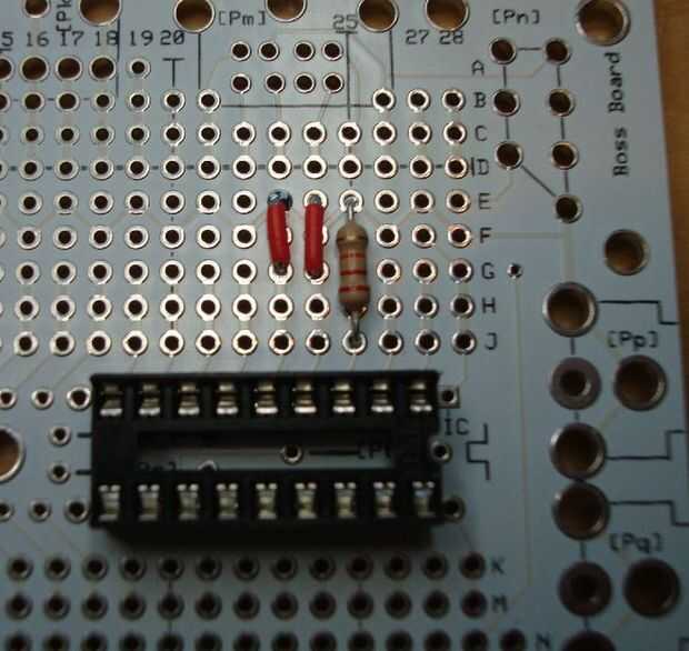 Añadir una resistencia de 22K (rojo-rojo-naranja) entre E25 y J25. Soldadura y recortar las puntas, pero mantenerlos - necesitaremos más adelante.