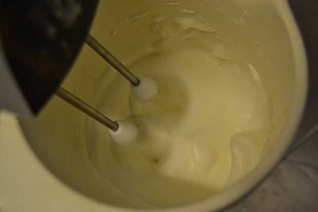 Bata la mezcla de azúcar y yema de huevo hasta que pálida y esponjosa.