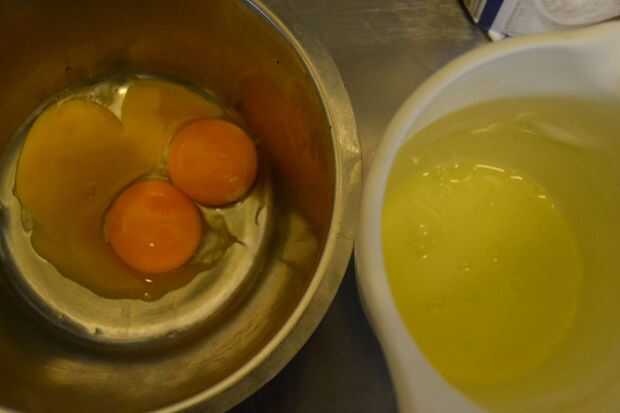 separar los huevos, poner las yemas en un cuenco y añadir el azúcar. con un rallador, jugo del limón en el recipiente.