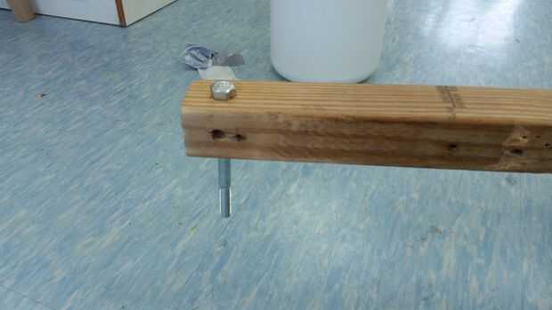 Finalmente, perforó un agujero en el extremo y condujo un perno de carruaje a través de él para hacer un gancho para sujetar a la bicicleta.