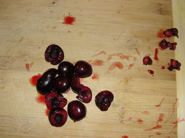 En primer lugar vas a tener que quitar las semillas de las cerezas. Luego, deberás aplastar las cerezas hasta que un consistentsy carnoso.