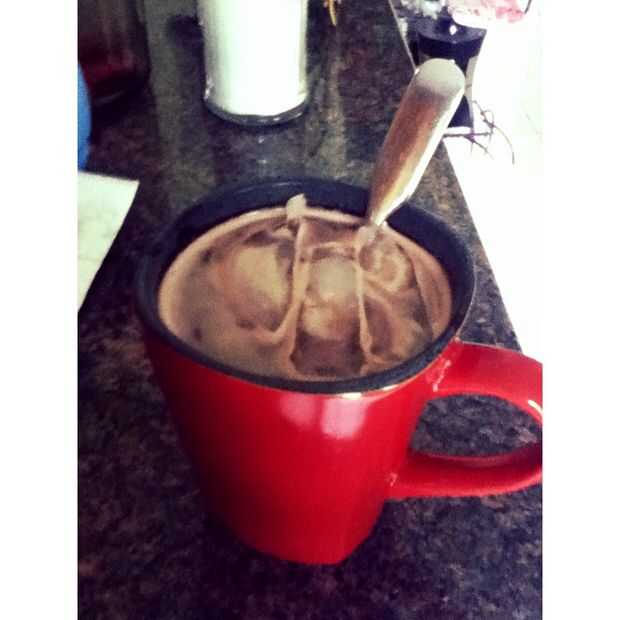 Por último, agregue algunos cubos de hielo para el chocolate caliente para que no es quemaduras en el siguiente paso si usted vierte el líquido como un perezoso borracho intentando jugar un violoncelo boca abajo al mismo tiempo. Lo hago.