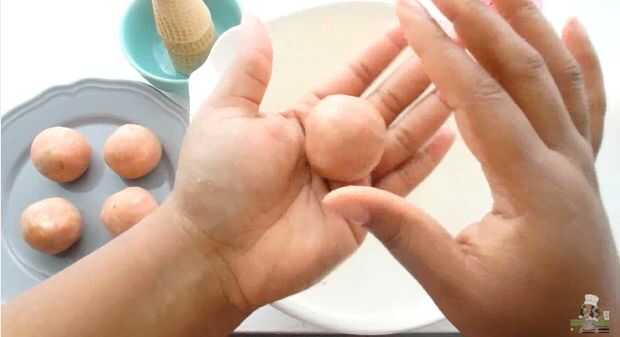 Una vez que la masa juntos, formar bolas de pastel de tamaño de una pelota de golf. También puede utilizar su cono de helado para la medición. Debe sentarse derecha en el cono sin ampliar demasiado lejos hacia fuera.