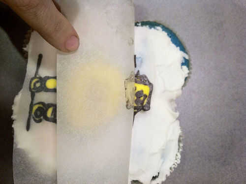 en la celebración de la última película de Harry Potter nos fuimos a trabajar en algunos Harry Potter inspirado cupcakes. Nuestras transferencias de fácil y rápida crema darán un toque mágico a cualquier lote de cupcakes.Paso 1: materiales Una docena
