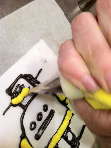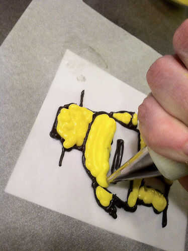 Inicio Presentación en su contorno con el segundo color. Trate de mantenerse en las líneas, pero puede cubrir líneas sin estropear nada. Cubrir toda la espalda con glaseado.