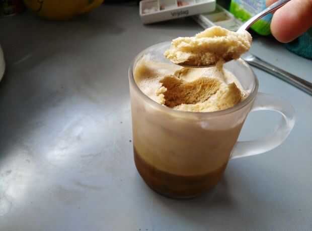 Después de 30 minutos está listo y usted puede sacar las copas y disfrutar. O si quieres algo parecido a un helado en la parte superior el café helado, tienes que esperar un poco más largo (1-2 horas).
