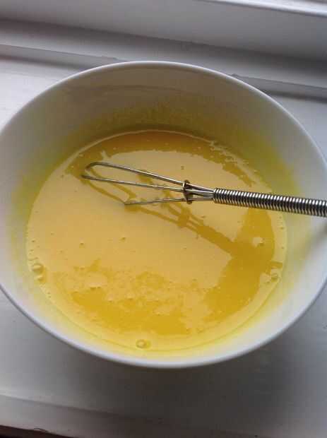 2. Vierta una pequeña cantidad de la mezcla de leche caliente en los huevos y bate al mismo tiempo. Quiere la cuchara en un poco de la mezcla de leche caliente a la vez y seguir batiendo o bien podría quedar con huevos revueltos en vez de una cremosa natilla.