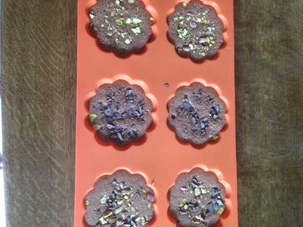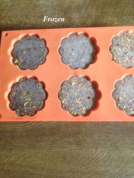 Usé una bandeja de silicona y la taza de metal a freez el helado. Lanzar en algunos chips Choco picaditas y pistacho en la bandeja de silicona del tazón de fuente y vierta la mezcla cremosa rica y congelar.