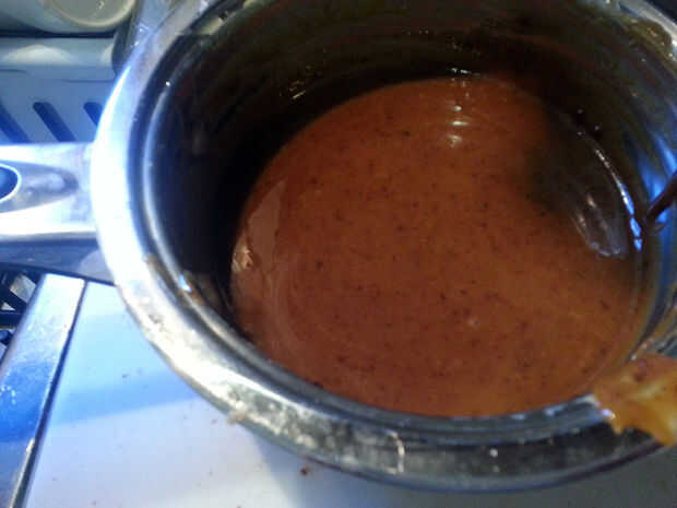 Mezclar todo excepto la vainilla y la sal en una olla. Fuego bajo, hacer 230F. Tomar fuera del fuego, vierta en vainilla y mar de sal. Mezclar suavemente.