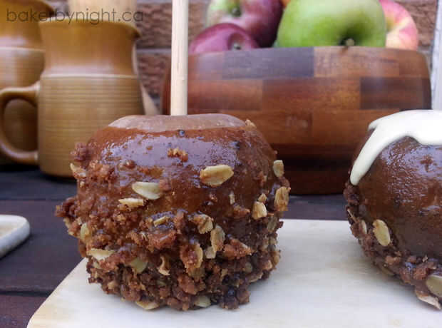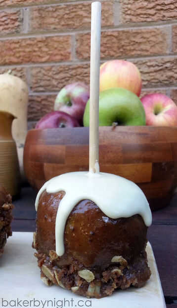 Suavemente derretir las obleas en el horno de microondas, entonces, una vez que han logrado una consistencia trabajable, use una cuchara para verter en una botella squeezy. Una vez que ha puesto el caramelo sobre las manzanas, apriete el chocolate sobre la parte superior para darle el aspecto de la fusión de helado.