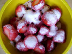 Esta es la receta de helado de fresa que se originó de mi abuela que murió cuando yo tenía 7 años. A través de los años que siguieron, mi abuelo amado procedió con la tradición. Me encantó el helado tanto que comería un montón, pero siempre consiguió