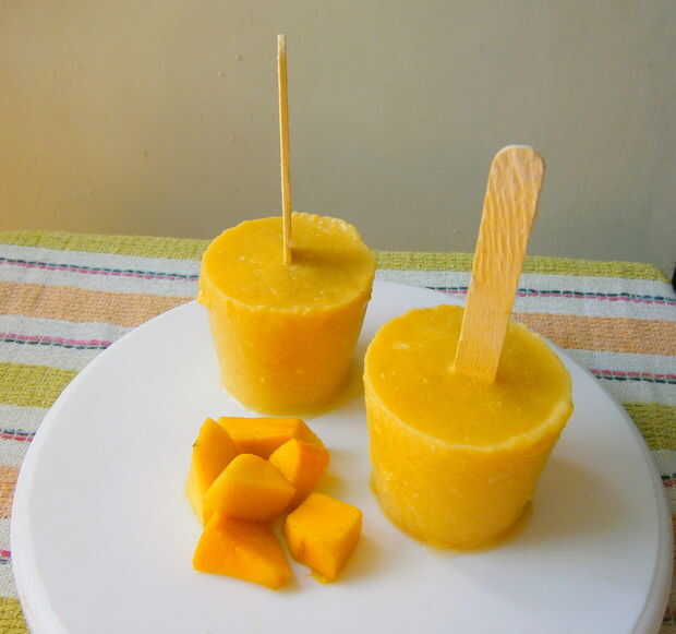 He presentado aquí la técnica para hacer jugo de mango helado sin un jugo de mango en forma de molde de paletas. Esta técnica se puede adaptar para cualquier receta de helado.