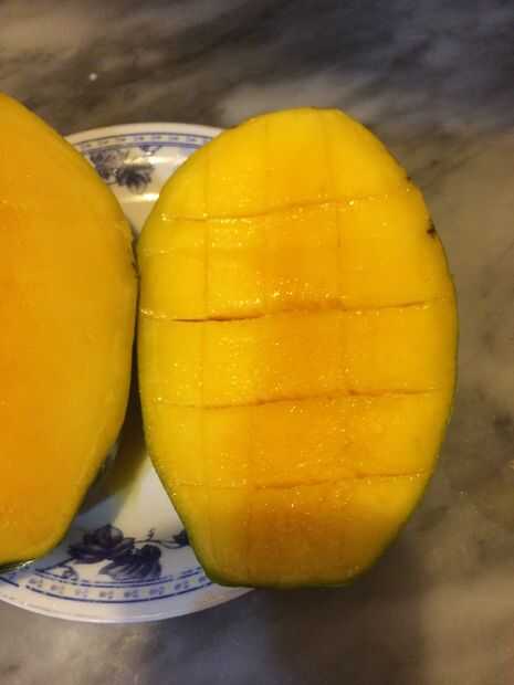 Ahora cortar el mango en tamaño pequeño y añadir con la mezcla :)
