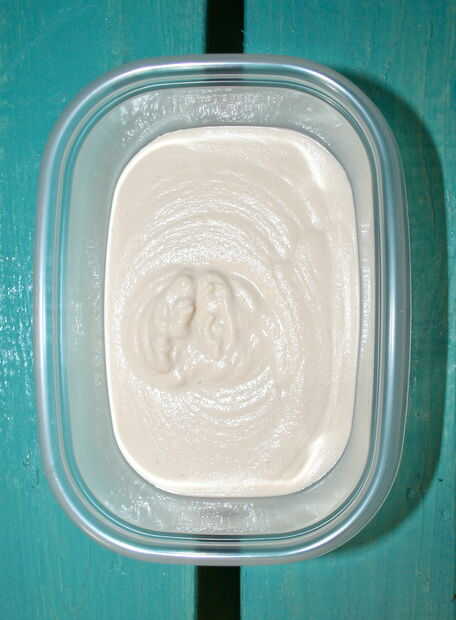 Si iniciaste con aproximadamente 2 y 1/4 taza castañas de cajú agregar 1/4 cada de néctar de agave crudo y aceite de coco. Mezclar nuevamente y verter luego en un contenedor sellable como tupperware o un tarro de cristal.