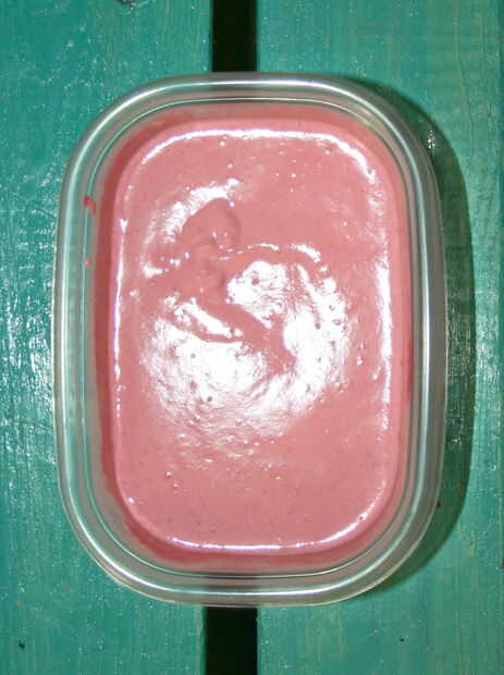 Para una versión fresca y afrutada, añadir un cristal o 6oz de frambuesas o fresas. Integran su base de anacardo "helado" y la congelación.