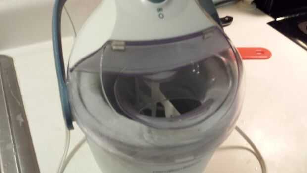 Congelar la mezcla siguiendo las instrucciones de la máquina.  Cuando tienes suave del helado congelado, transferir a recipientes pequeños para congelar a la firmeza deseada.  Usé moldes de pan pequeño de cartón forrados con plástico para envolver.