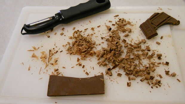 Sacar la mousse del congelador y cubrir con virutas de chocolate y servir.