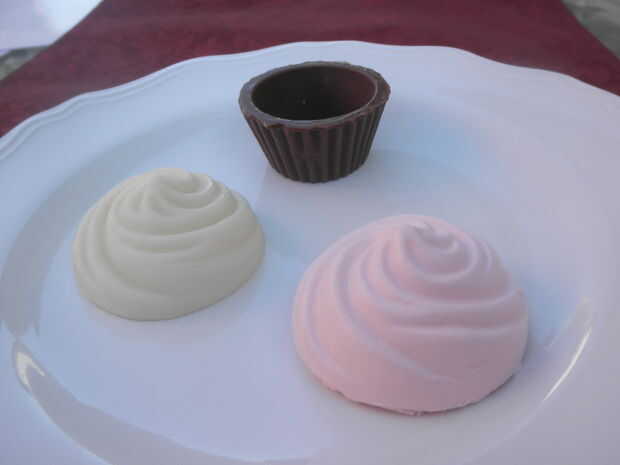 Nota: quería chocolate rosa así que había teñido mi blanco chocolate con colorante Rosa. (en la foto)