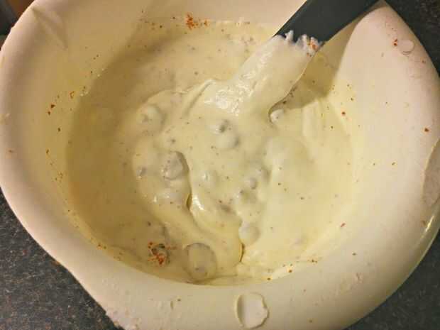 Machacar 20 piezas o más si lo desea, en el tazón de fuente. Mezclar con la espátula.