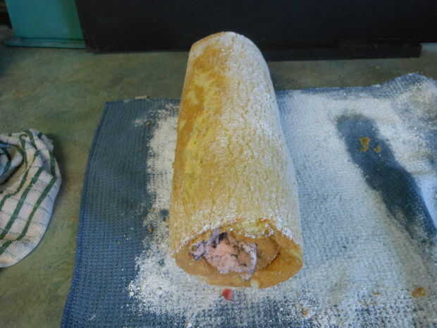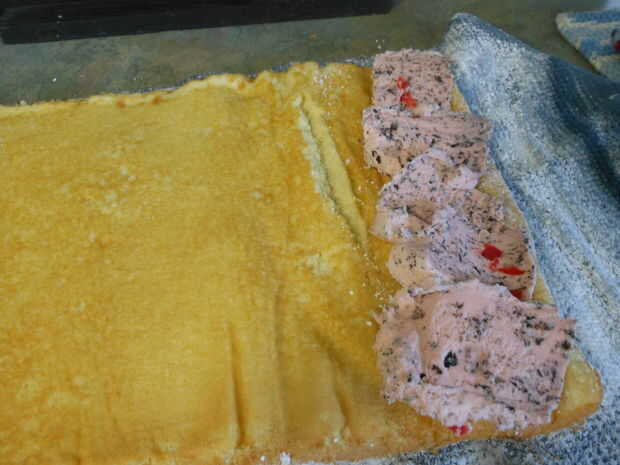 treinta extraños hace unos años, un domingo, mi marido (de menos de un año), vino de la obra y anunció que lo debían tomar un cumpleaños torta a trabajar esa noche. MIERDA! No tenía nada en los armarios; sobre 1 + taza de harina de la torta, unos huevos, algunos helados y era él. Ahora lo que me voy a hacer. Hojeando mi libro de cocina, encontré una receta para un rollo de jalea. (Bombilla de luz se enciende!) Yo podría hacer un jelly roll, pero poner helado en ella y hacer un rollo de pastel de helado. Por lo es lo que hice. I envuelto en papel de aluminio, guardar en el freezer y cuando iba a trabajar, le dio instrucciones sobre cómo cuidar de él y servirlo. A la mañana siguiente, mi marido llegó a casa radiante. El rollo de pastel de helado fue un gran éxito. Todo el mundo le encantó, incluyendo mi esposo, quien declaró que él quería para su cumpleaños, día del padre, etc., etc., etc.. Así se convirtió en una tradición familiar. Este es un postre de pastel de helado grandes para cualquier ocasión, incluso día de la madre. Así que esto es como hacer un rollo de pastel de helado.