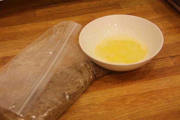 Derretir dos cucharadas de mantequilla en un tazón grande. Añada las migas y comprimir tanto como usted puede. Los densos que haces, el más grande los pedacitos de corteza será cuando les revuelva su helado.