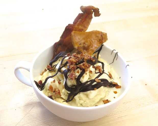 Mmmm, tocino. ¿Pero en helado? Seguramente sólo un genio o un científico loco podría hacer ese trabajo; Afortunadamente, Heston Blumenthal es un poco de ambas, y helado de tocino y huevo es un plato de su Restaurante de pato grasa. Nunca he visitado