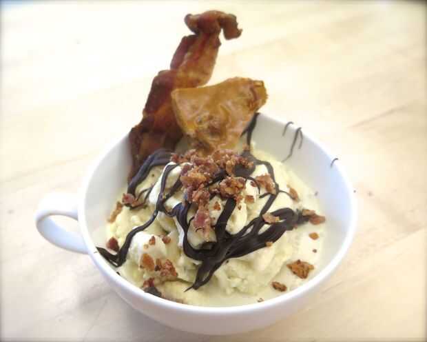 Había adornado mi helado con chocolate derretido, un pedazo de tocino, un pedazo más grande de tocino quebradizo y algunos trocitos de tocino. Fue delicioso!