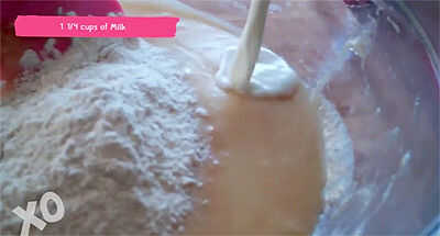 Antes de añadir el último lote de harina, agrega 1 1/4 tazas de leche.