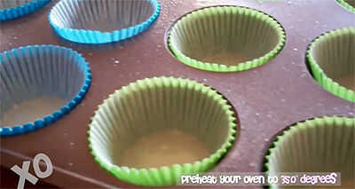 Una vez que todo está completamente mezclado, rocíe un cupcake para hornear pan y añadir 1 a 2 cucharadas a cada sostenedor de la Magdalena. Esto realmente depende si estás usando una bola de helado grande. Así que en este punto, usted necesitará bola del ojo y asegúrese de que no desborde. ¿No quieres hacen cupcakes en diferentes tamaños? :)