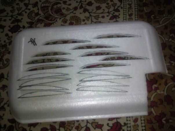 Cortar todas las formas con un cortador de... hice 8 cuatro en cada ala. Después de cortar todos los perfiles... se pueden lijar para emparejar entre sí... pero me daba pereza hacerlo. Una vez que haya terminado con las superficies de sustentación, dejarlos a un lado por el momento... Ahora crearemos la estructura de ala y fusible con palitos de helado.