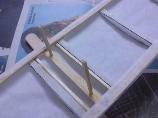 Palillo del pegamento dos justo en la parte inferior del ala. Esto se utilizará para el montaje del fuselaje. Consulte las fotos de esclarecimiento.