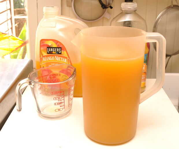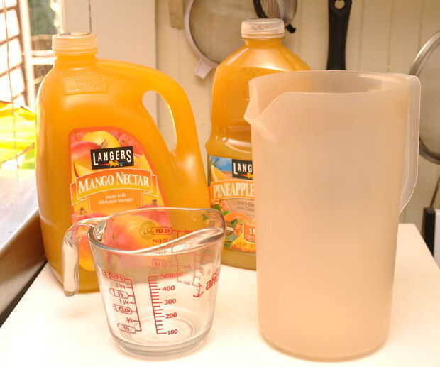 The amount of each you will need will depend on tastes.  Prefería más néctar de mango de jugo de piña-naranja, pero se mezclan y ver lo que li