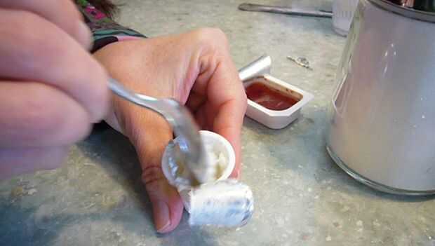 Abrir tazas y agregue azúcar o sólo mermelada. Mix. hecho helado de fresa.
