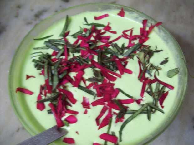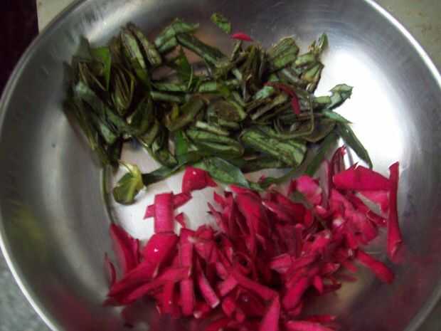 5. hojas del betel finamente cortado y las hojas rosas y añadir a la mezcla.