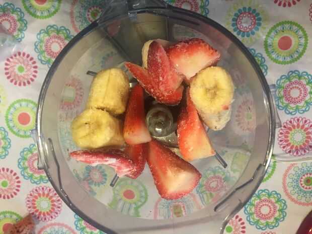 he utilizado 3 bananas y 3 fresas, las fresas que usé eran muy grandes así que si tu uso regular tamaño los puede utilizar 4.