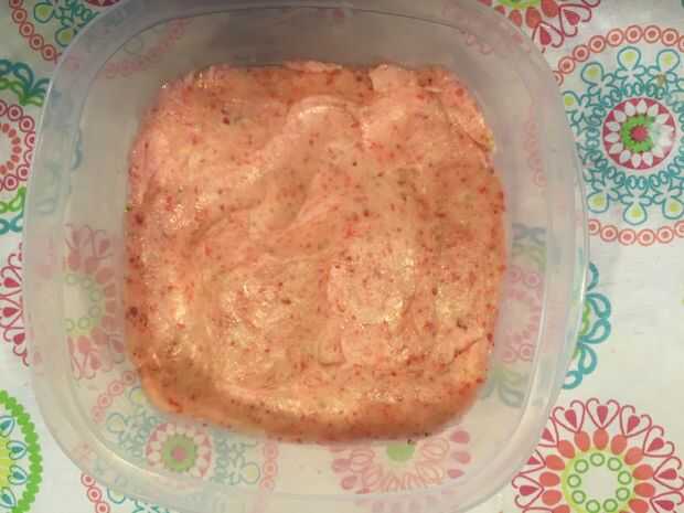 Ahora puede extender la mezcla en un recipiente pequeño.