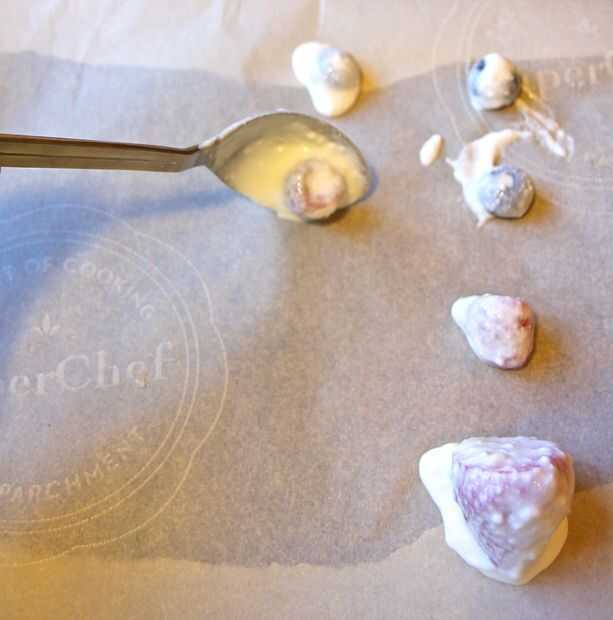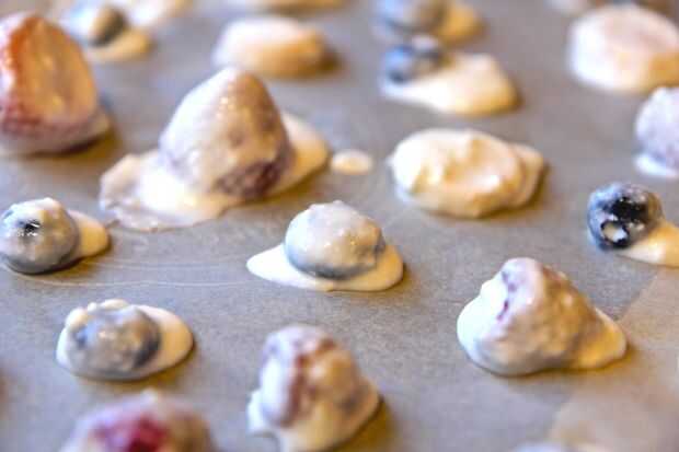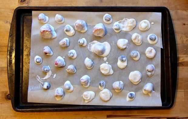 Cuchara de cada fruto individualmente en la charola preparada. Idealmente todos estarán separadas para que se congelen por separado.