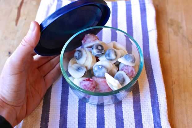 Si usted no va a comer sus deliciosos aperitivos para un rato, coloque en un tupperware y ponerlos en el congelador hasta que esté listo para comer. Siempre podría plop unos bocados de fruta congelada en su licuado así!