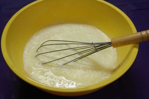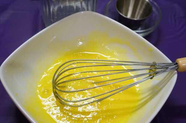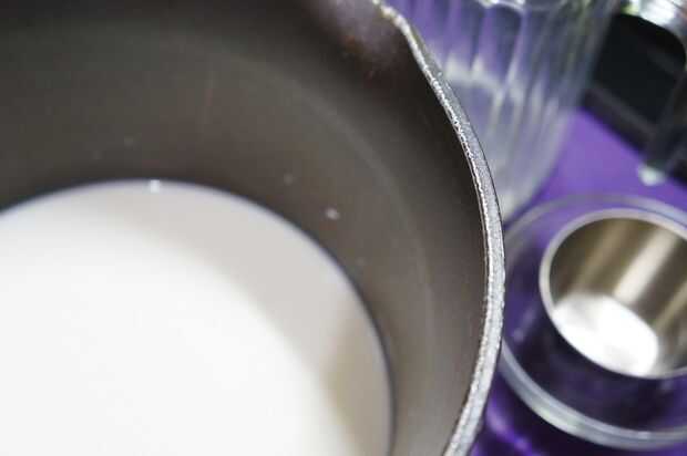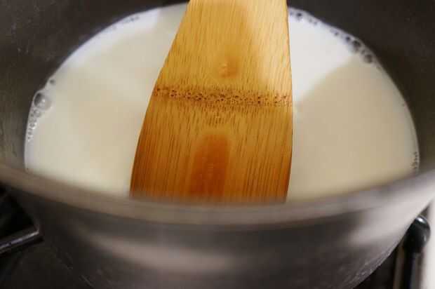 Vierta la leche, el azúcar y la sal en una cacerola de fondo pesado y llevar los ingredientes a fuego lento. Remover para disolver el azúcar. Retirar del fuego y añadir una pequeña cantidad de esta mezcla en un flujo muy lento a las yemas de huevo; no cocinar las yemas de huevo. Revuelva para combinar.