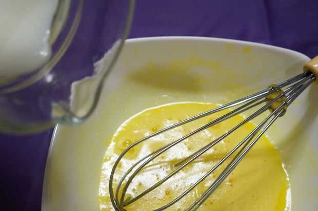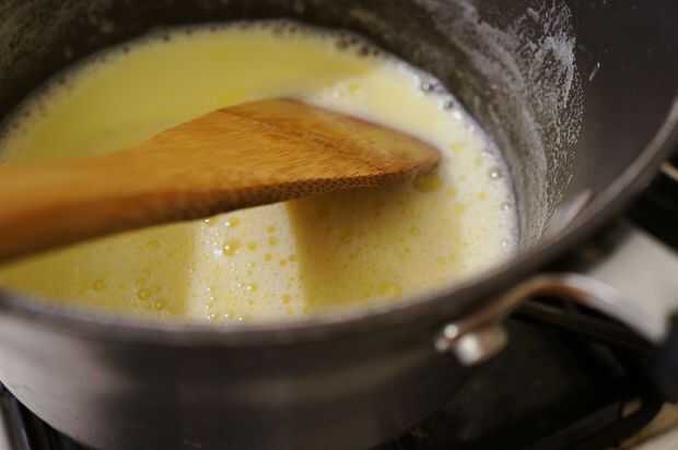 Añadir la mezcla de huevo a la cacerola con la leche sobrante.