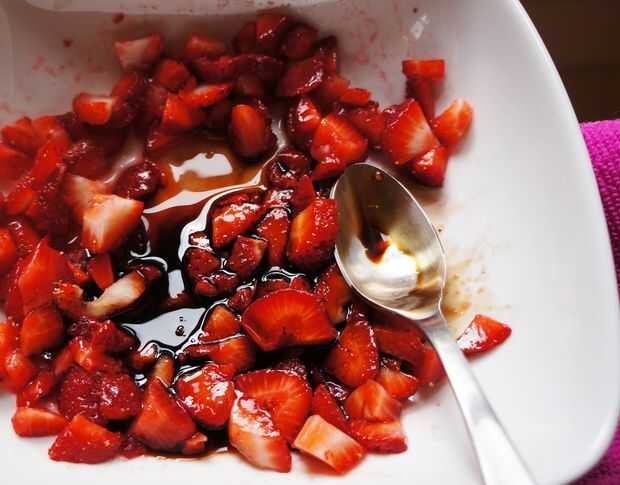Rocíelas con suficiente vinagre balsámico para cubrir ligeramente.