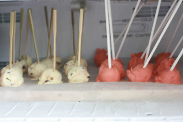 Desde que no estas comiendo inmediatamente, me los puse en el congelador un poco. Después de 10 minutos, yo había separado en bolsas según sus sabores.