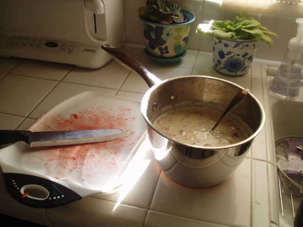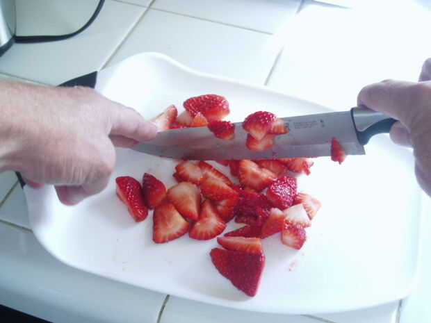 Mayoría de las recetas sugieren en este punto que la fruta se procesa con un procesador de alimentos. Por todos los medios si tienen un procesador de alimentos procesar este alimento con él.