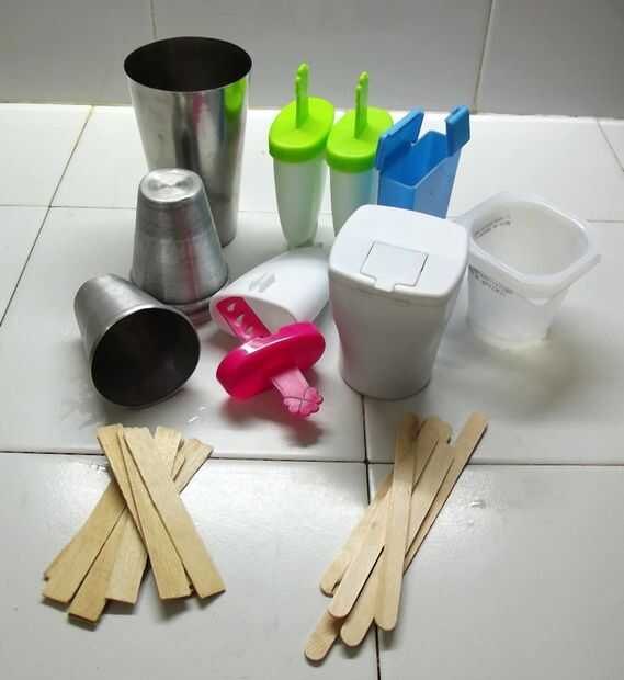 Por lo que es lo principal para preparar un helado o paleta de helado tienen un molde, cualquier molde, sea una marca, hecho para él, un cristal, un plástico uno o nada (ver fotos). Son unos palos o cucharas para poner en nuestra paleta o helado. Si usted puede conseguir rústico palillos de madera sería mejor, se pegará a cualquier preparación.