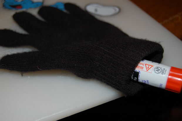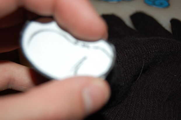 toma el pegamento caliente y coloque una pequeña cantidad en un dedo (de guante) de su elección (el va a hacer esto para todos los dedos le estoy sólo dando cierta libertad) y colocar la correspondiente en ella y aplique presión asegurándose de que su en la punta del dedo
