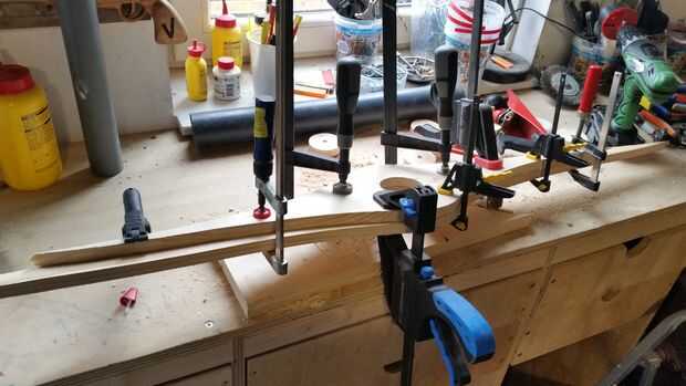 Entonces yo simplemente había aserrado los 8 pedazos hacia fuera con una sierra de calar. Pegado de juntas era un dolor pero he conseguido mediante el encolado en secciones. Tenga en cuenta que debes pegar en una espiral.