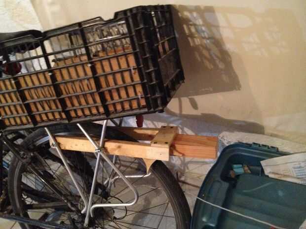 Mejoré el Monte a la moto. Ahora os adjunto 2 2x1s a los soportes del transportador vertical. Utilizar abrazaderas para fijarlo a los soportes por lo que se puede quitar fácilmente de la bicicleta. He instalado un bloque de madera al final para que el motor y la hélice pueden ser atornillados a ella.